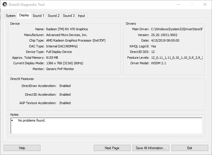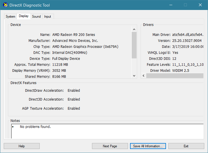 If you find this site serviceableness, please support us by sharing this posts to your preference social media accounts like Facebook, Instagram and so on or you can also Download this blog page with the title Dxdiag Graphics Card by using Ctrl + D for devices a laptop with a Windows operating system or Command + D for laptops with an Apple operating system. If you use a smartphone, you can also use the drawer menu of the browser you are using. Whether it's a Windows, Mac, iOS or Android operating system, you will still be able to bookmark this website.